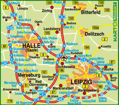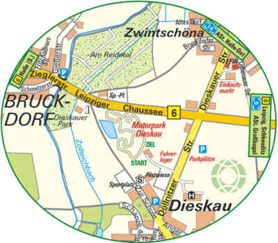 befindet sich an der B6 unmittelbar hinter Halle in Richtung